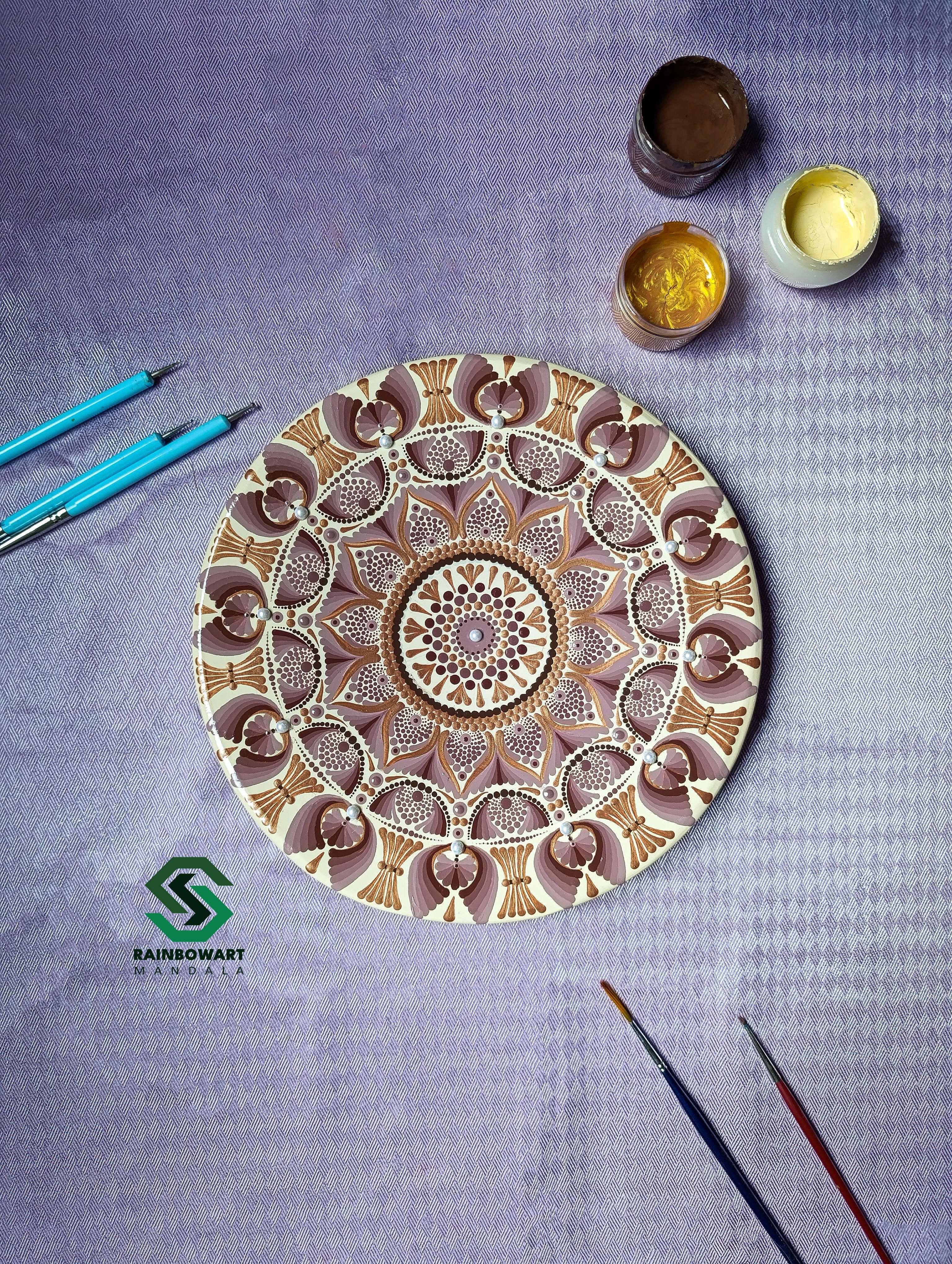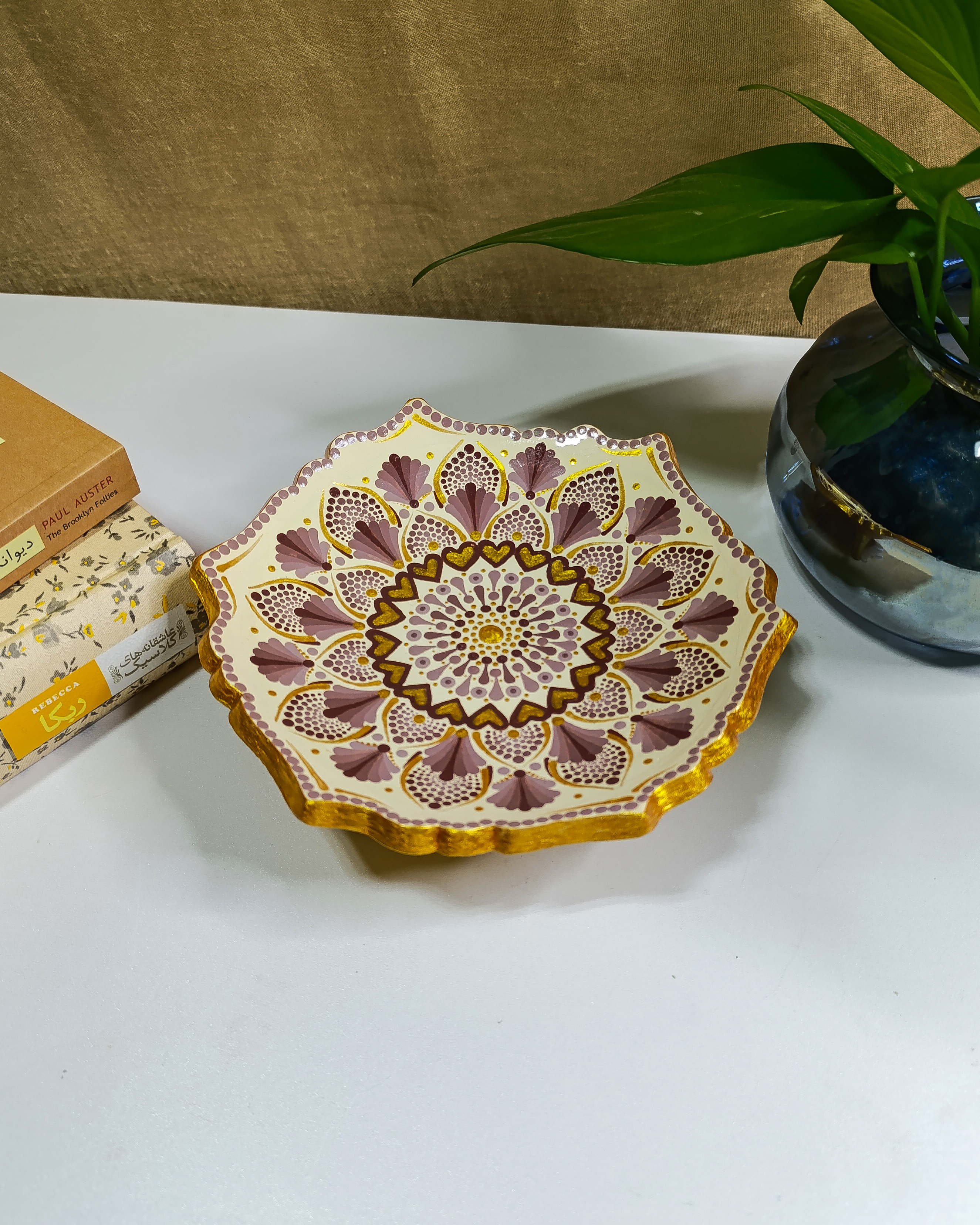 شیرینی خوری تک پایه کرمی | طرح ماندالا و دات ماندالا