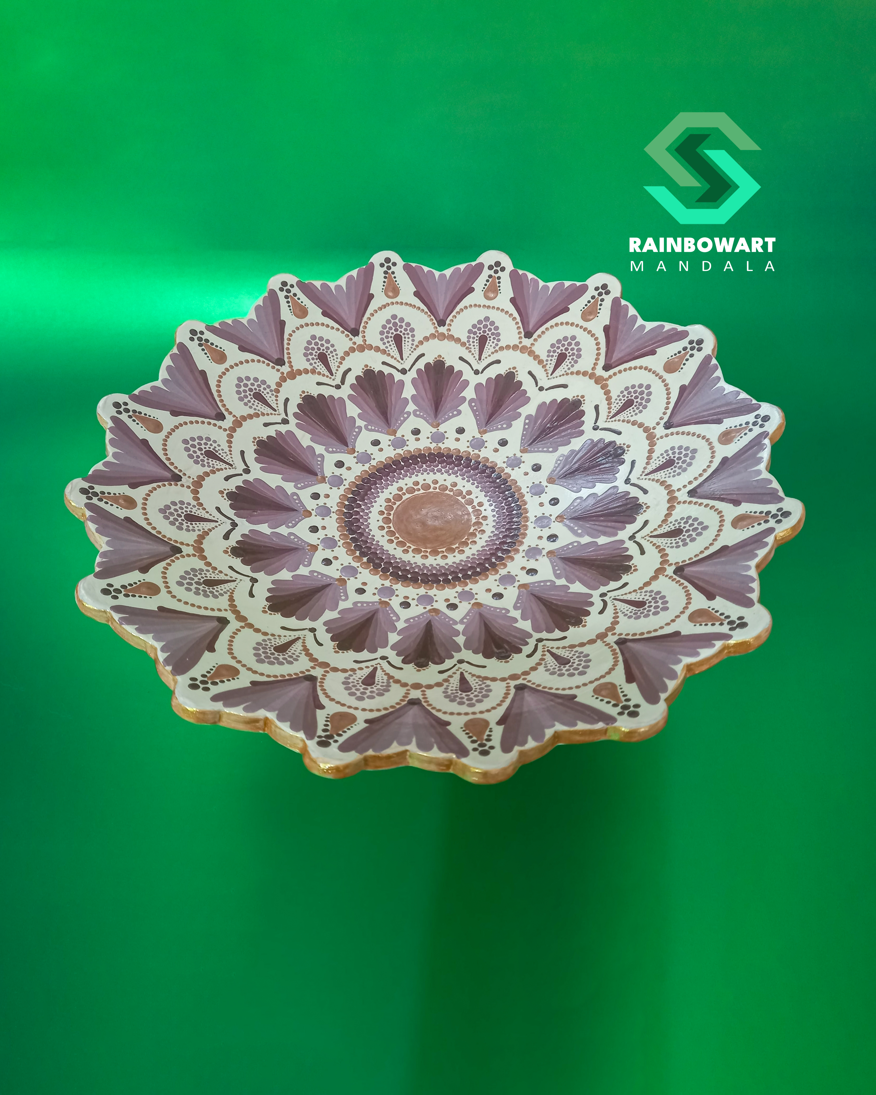شیرینی خوری پایه دار کرمی | طرح ماندالا و دات ماندالا
