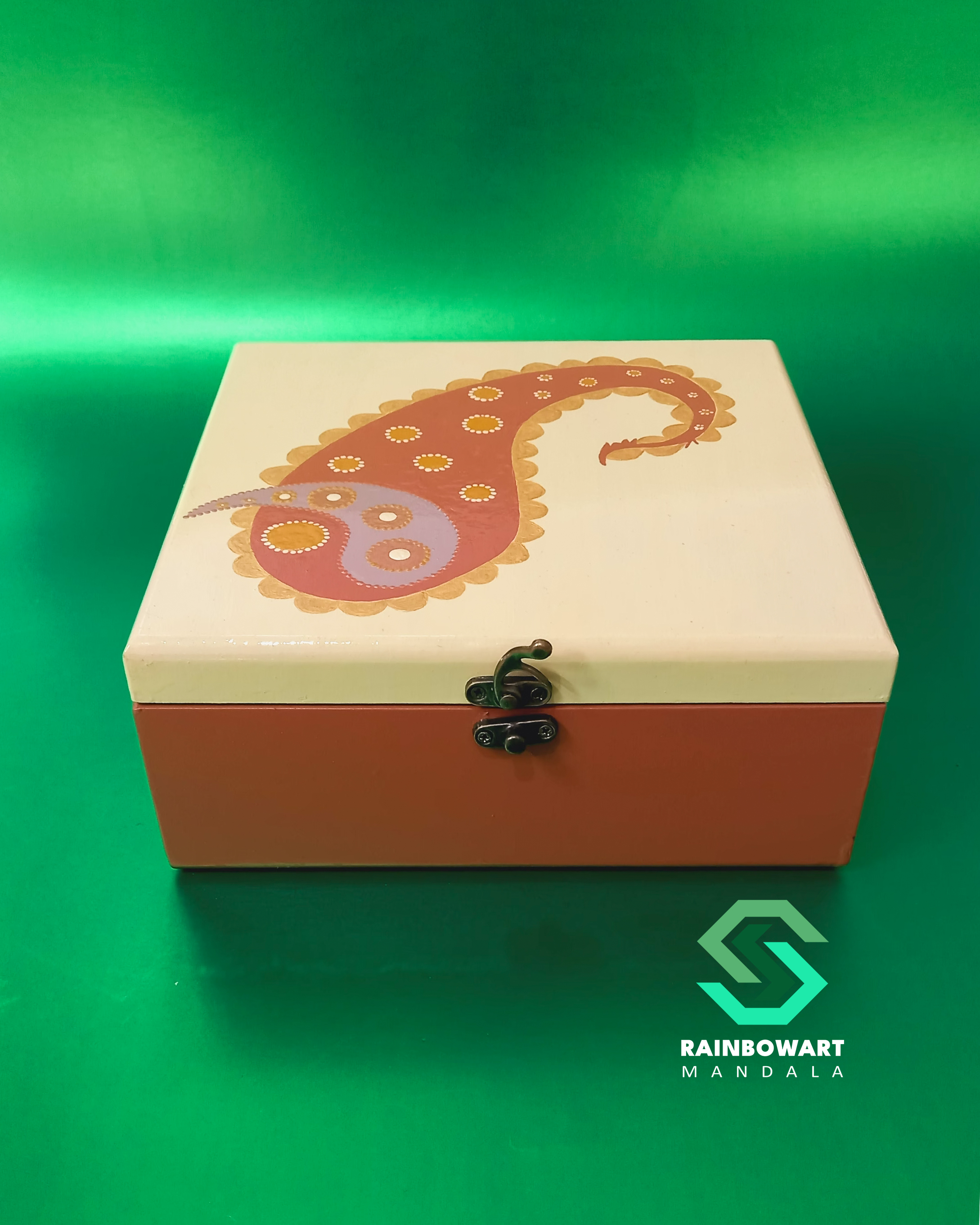 در این دسته از فروشگاه رینبوآرت، مجموعه‌ای خاص و کاربردی از جعبه چوبی دست‌ساز با طراحی‌های هنری و منحصربه‌فرد ارائه شده که با نقوش ماندالا و دات ماندالا توسط هنرمند «سهیلا میرزایی» به‌صورت کاملاً دستی طراحی و رنگ‌آمیزی شده‌اند. این جعبه‌های چوبی هنری نه‌تنها کاربردی هستند، بلکه به‌عنوان یک المان تزئینی زیبا در دکوراسیون خانه یا محیط کار نیز شناخته می‌شوند.