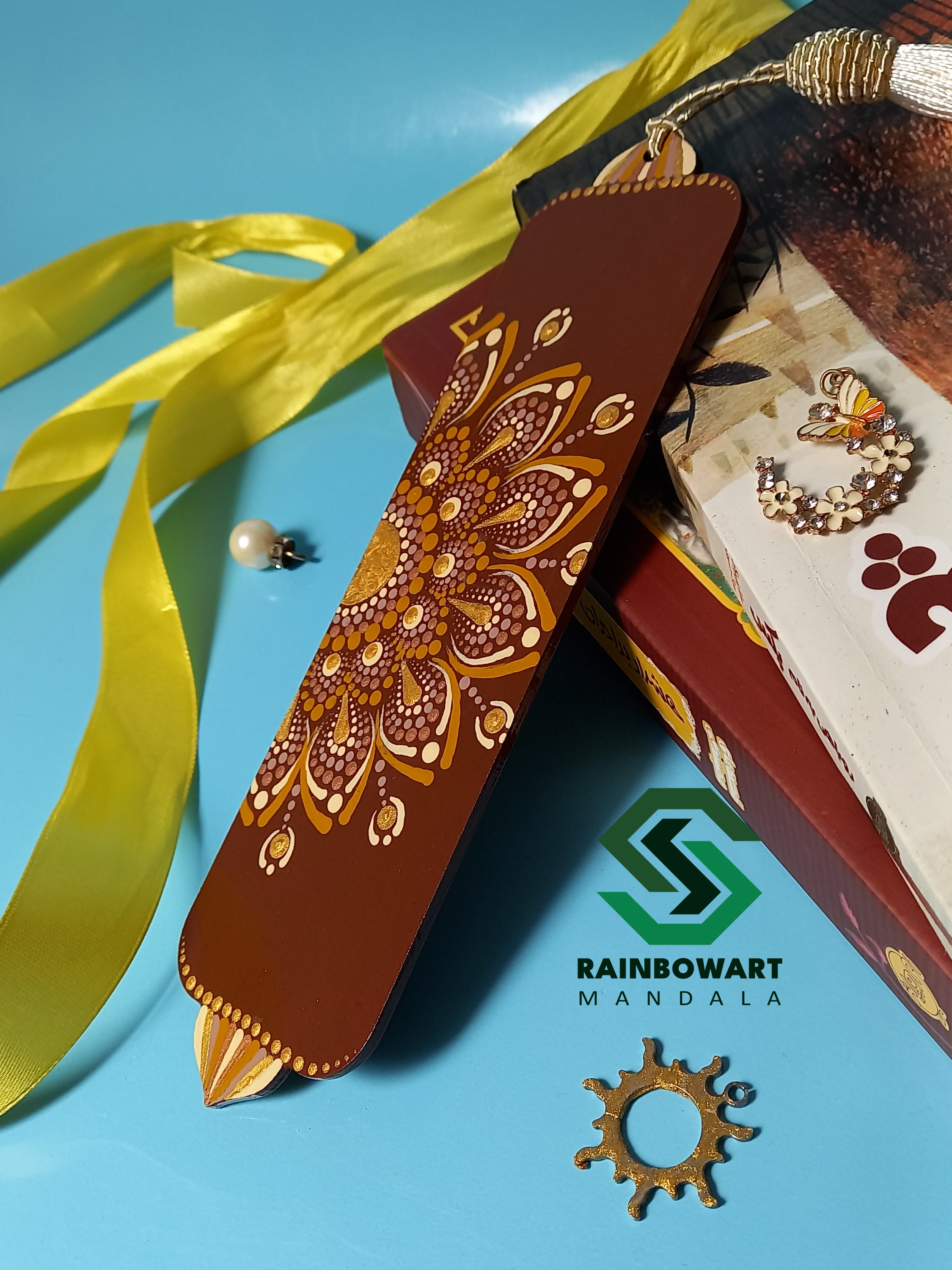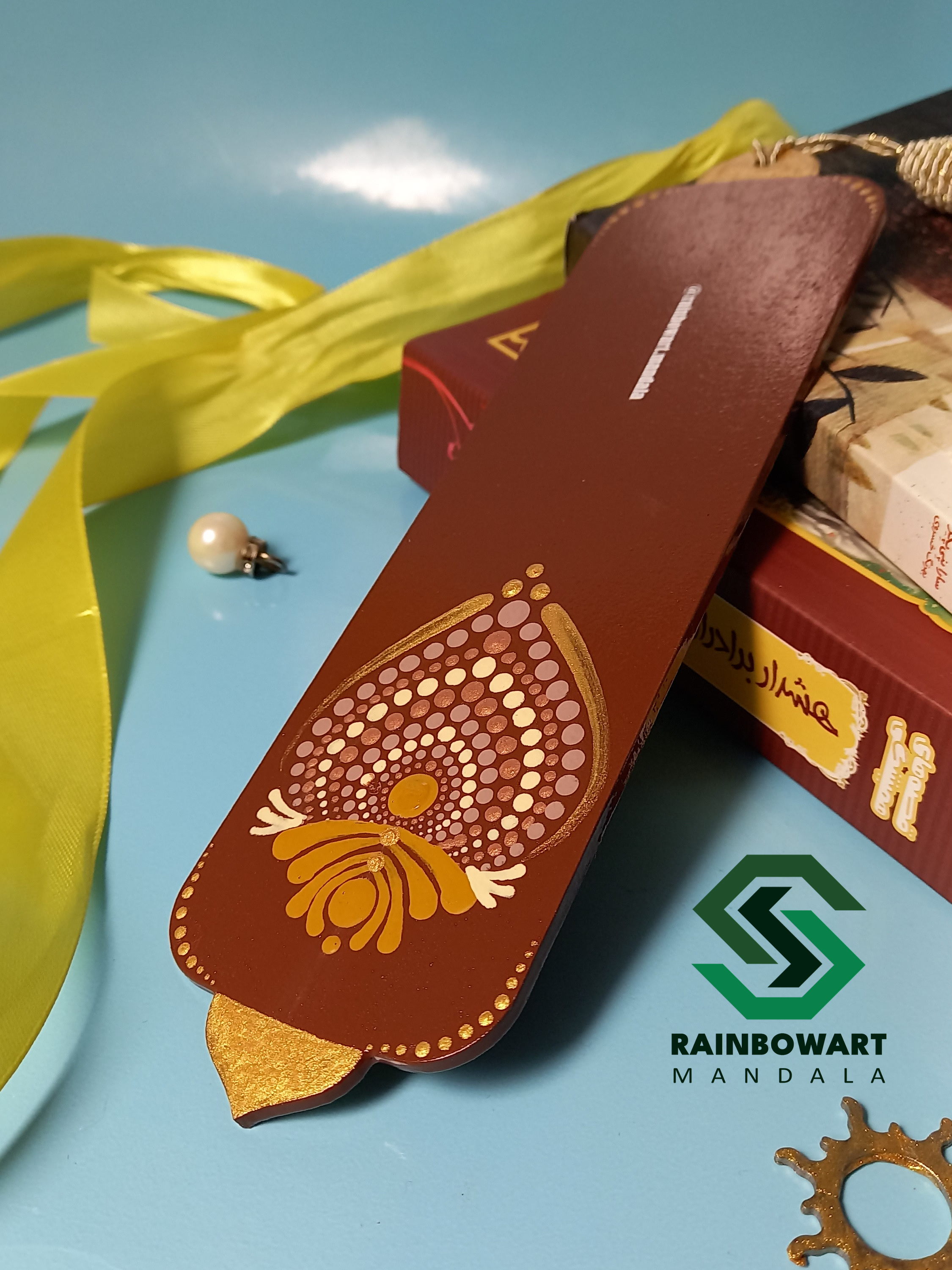نشانگر (بوکمارک) چوبی با رنگ بدنه قهوهای و طرحهای کرمی از مجموعه بوکمارکهای دستساز با نقوش ماندالا و دات ماندالا است. این نشانگر کاربردی و زیبا برای علامت گذاشتن صفحات کتاب طراحی شده تا صفحه خوانده شده را گم نکنید و از تا شدن صفحات جلوگیری شود، بهطوری که کتاب شما همیشه تمیز و مرتب باقی بماند.