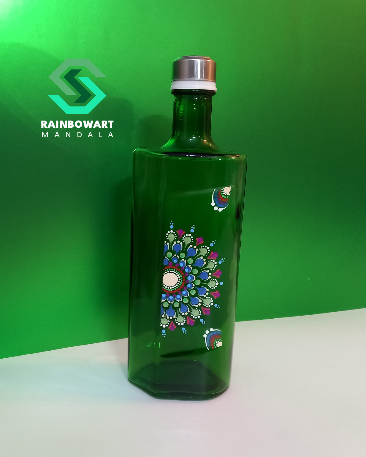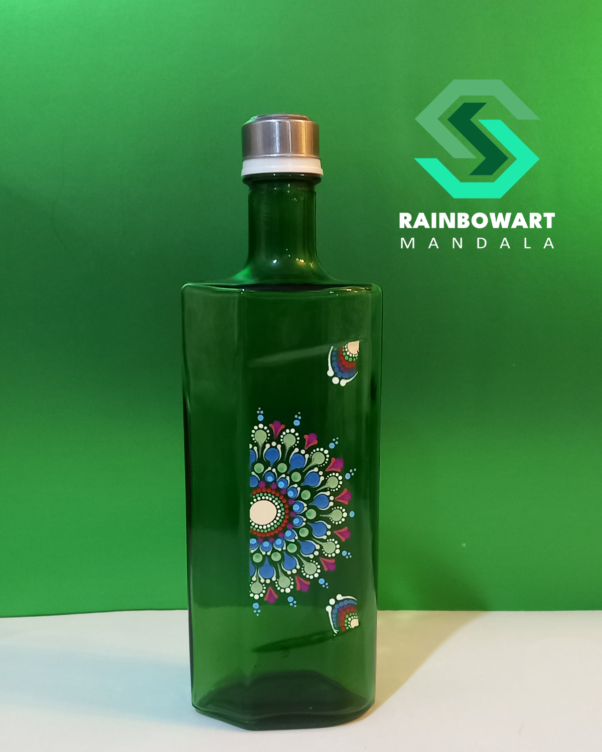 بطری شیشه ای سبز | طرح ماندالا و دات ماندالا