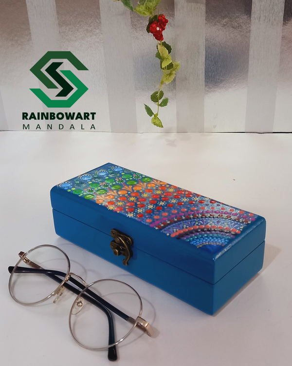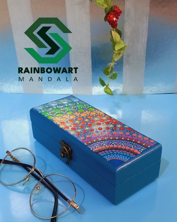 جعبه جاعینکی آبی با طرحهای رنگین کمانی | طرح ماندالا و دات ماندالا