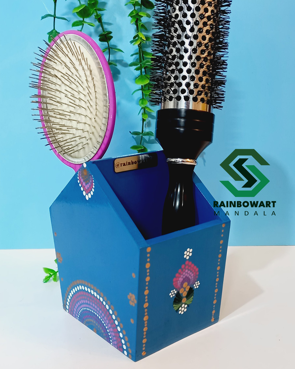 جاخودکاری چوبی دوقلو با رنگ آرامشبخش فیروزهای و نقوش دستساز ماندالا و دات ماندالا، ترکیبی از کاربرد و زیبایی هنری است. طراحی متقارن و نقاشی روی تمام وجوه این محصول، آن را به انتخابی چشمنواز برای روی میز کار، میز آرایش یا میز تحریر تبدیل کرده است.