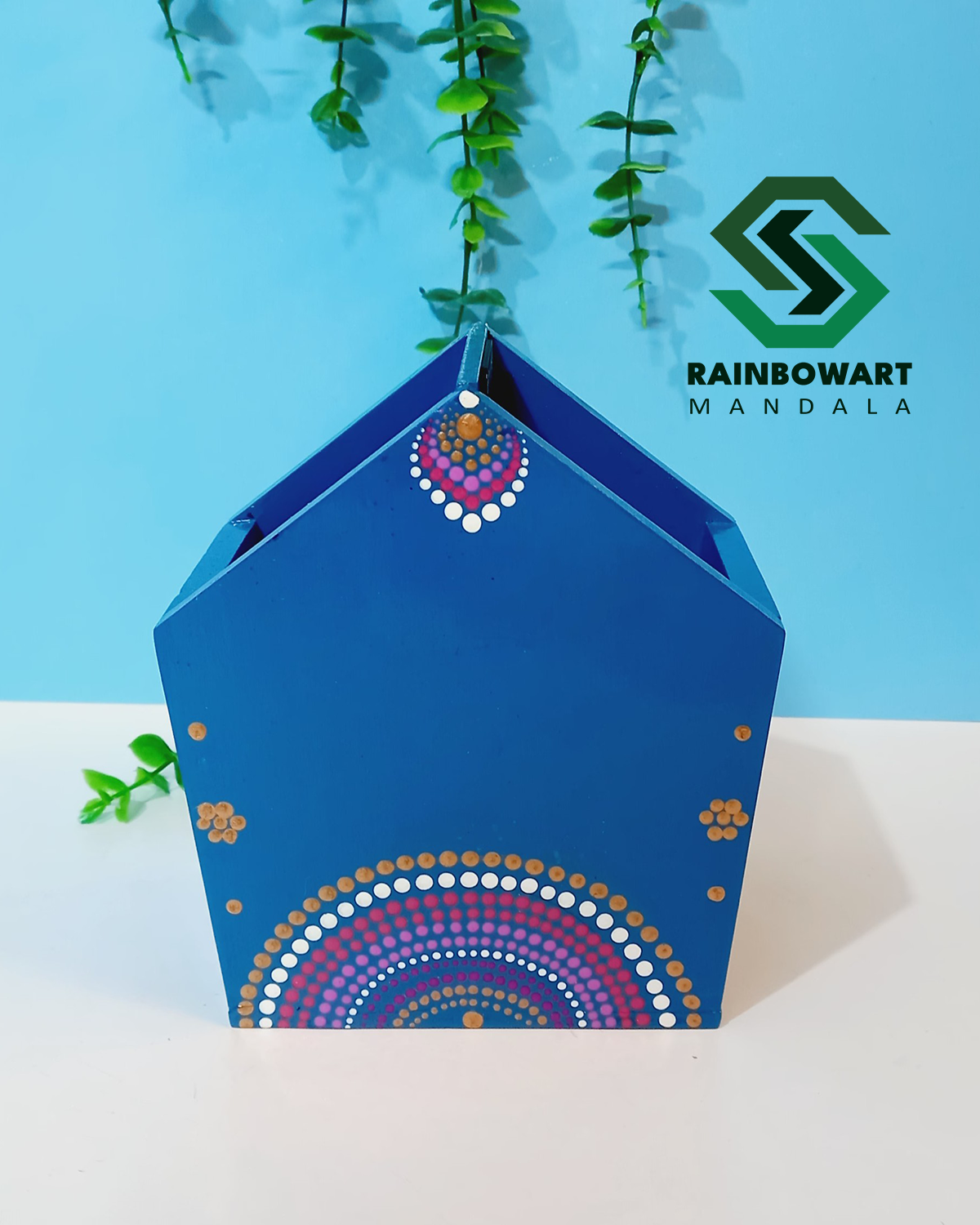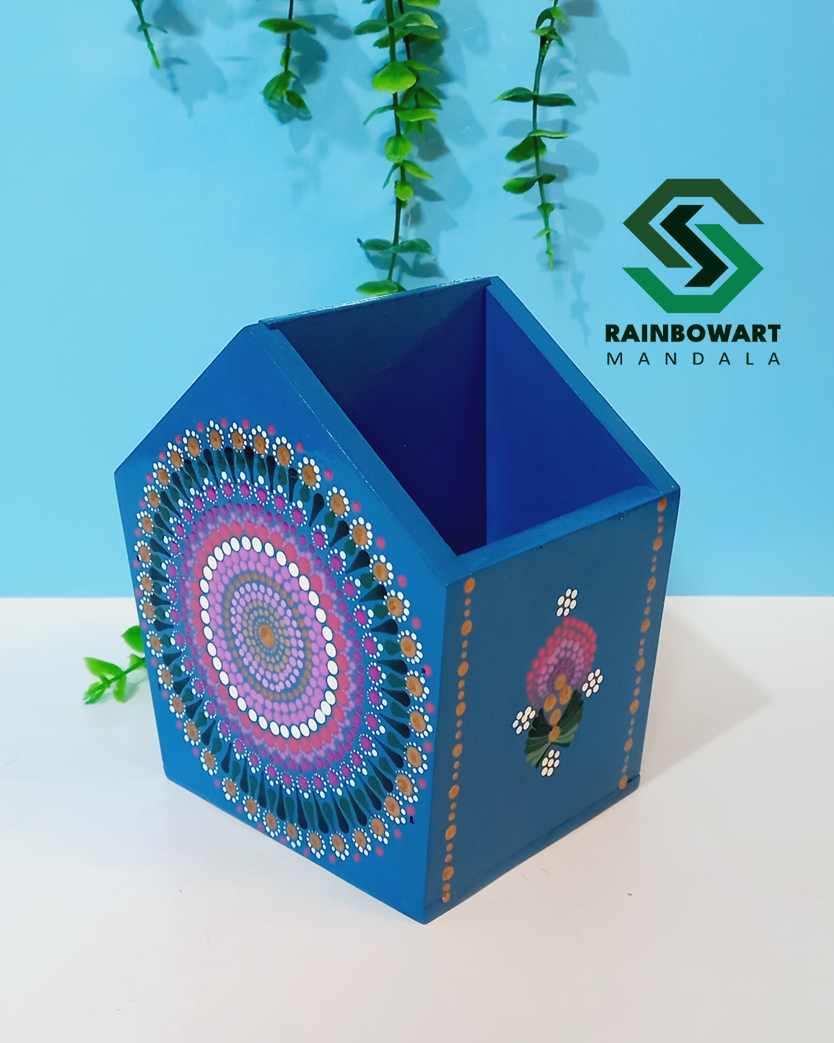 جاخودکاری چوبی دوقلو با رنگ آرامشبخش فیروزهای و نقوش دستساز ماندالا و دات ماندالا، ترکیبی از کاربرد و زیبایی هنری است. طراحی متقارن و نقاشی روی تمام وجوه این محصول، آن را به انتخابی چشمنواز برای روی میز کار، میز آرایش یا میز تحریر تبدیل کرده است.