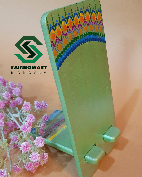 هولدر موبایل چوبی سبز با لوگوی بی ام دبلیو | طرح ماندالا و دات ماندالا