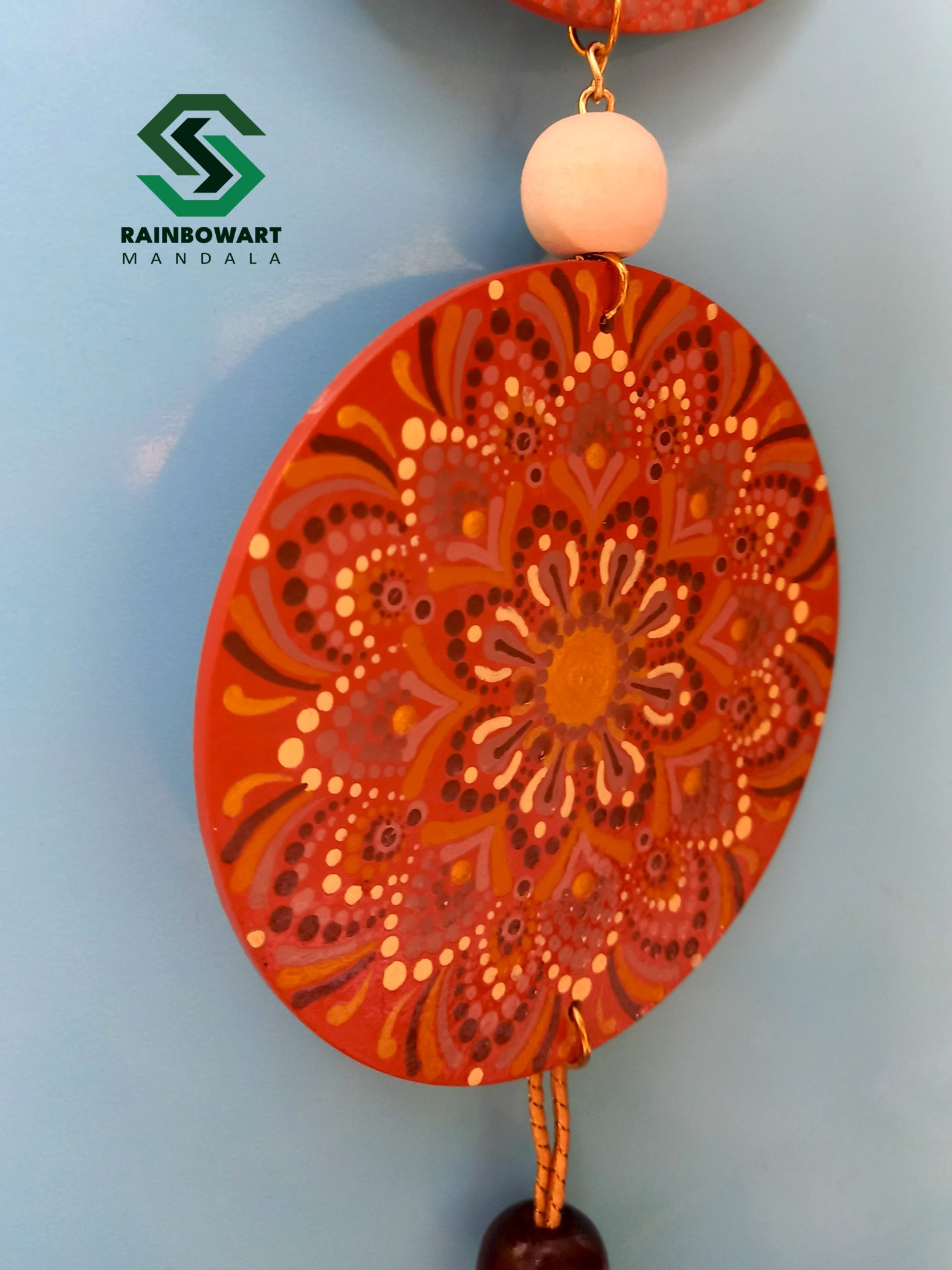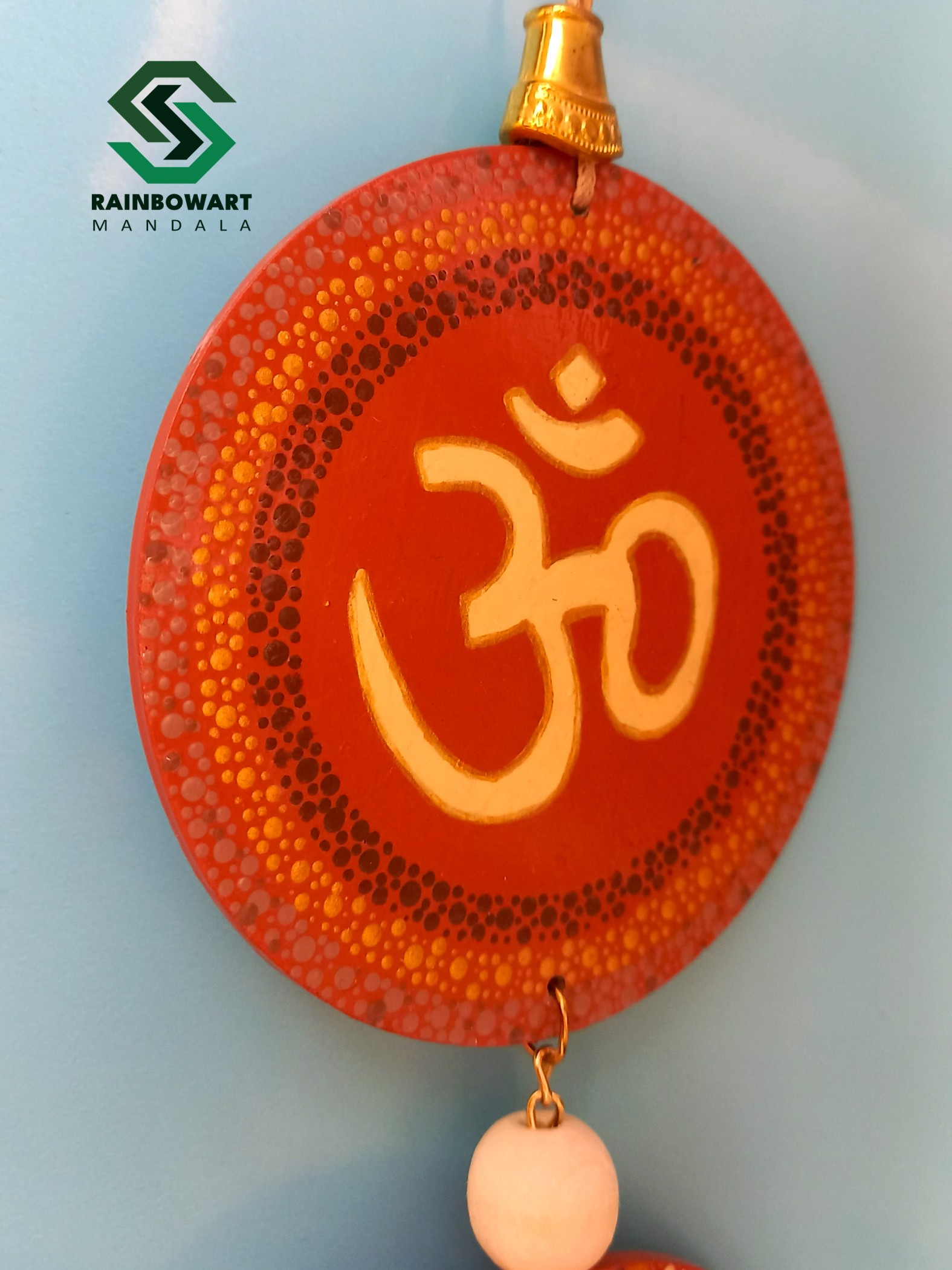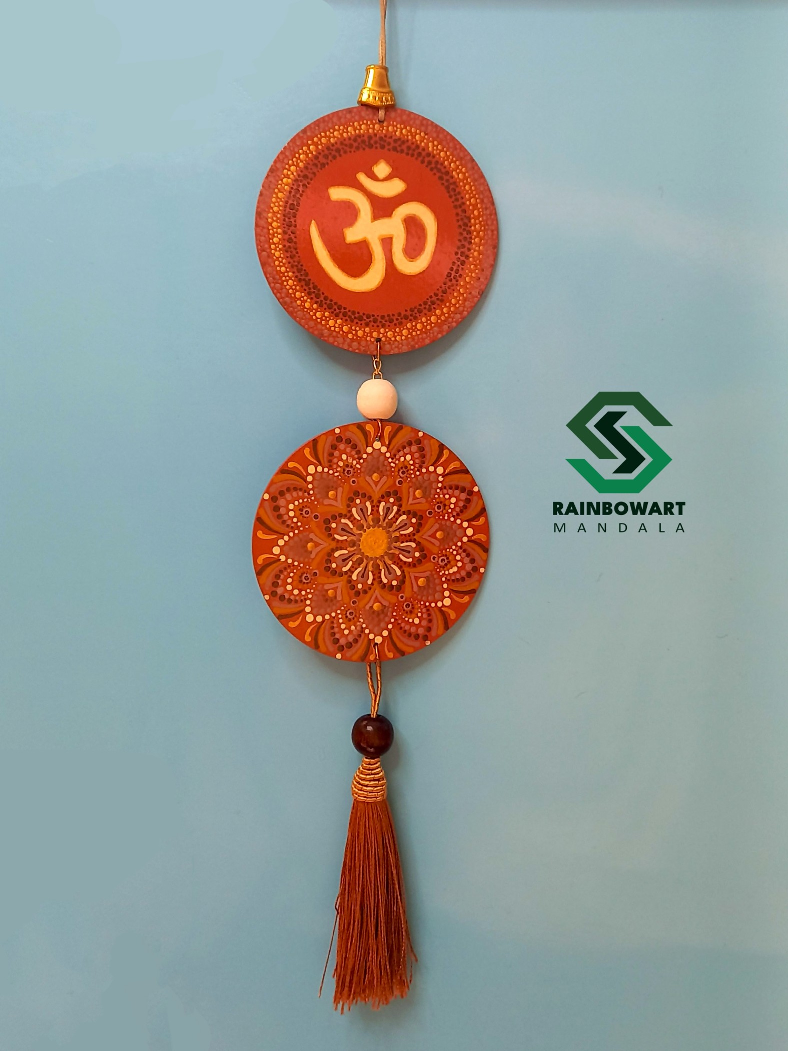 این آویز دیواری دوتکهی دستساز، با نقوش ماندالا و نماد مقدس "ॐ" در بخش بالایی، بیش از یک تکه دکوراتیو ساده است؛ بلکه دعوتی روحانی برای تجربهی آرامش داخلی و اتصال به هستی است.