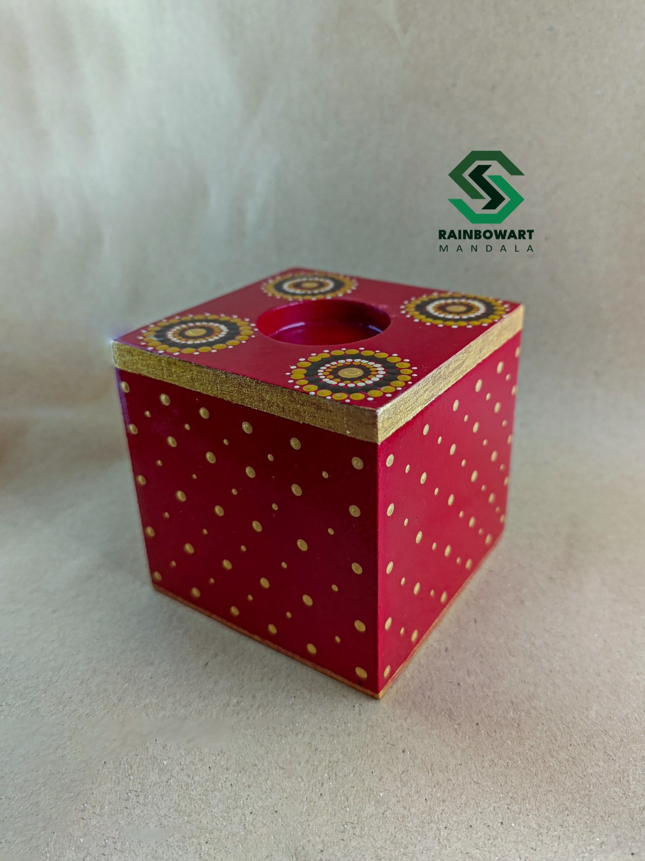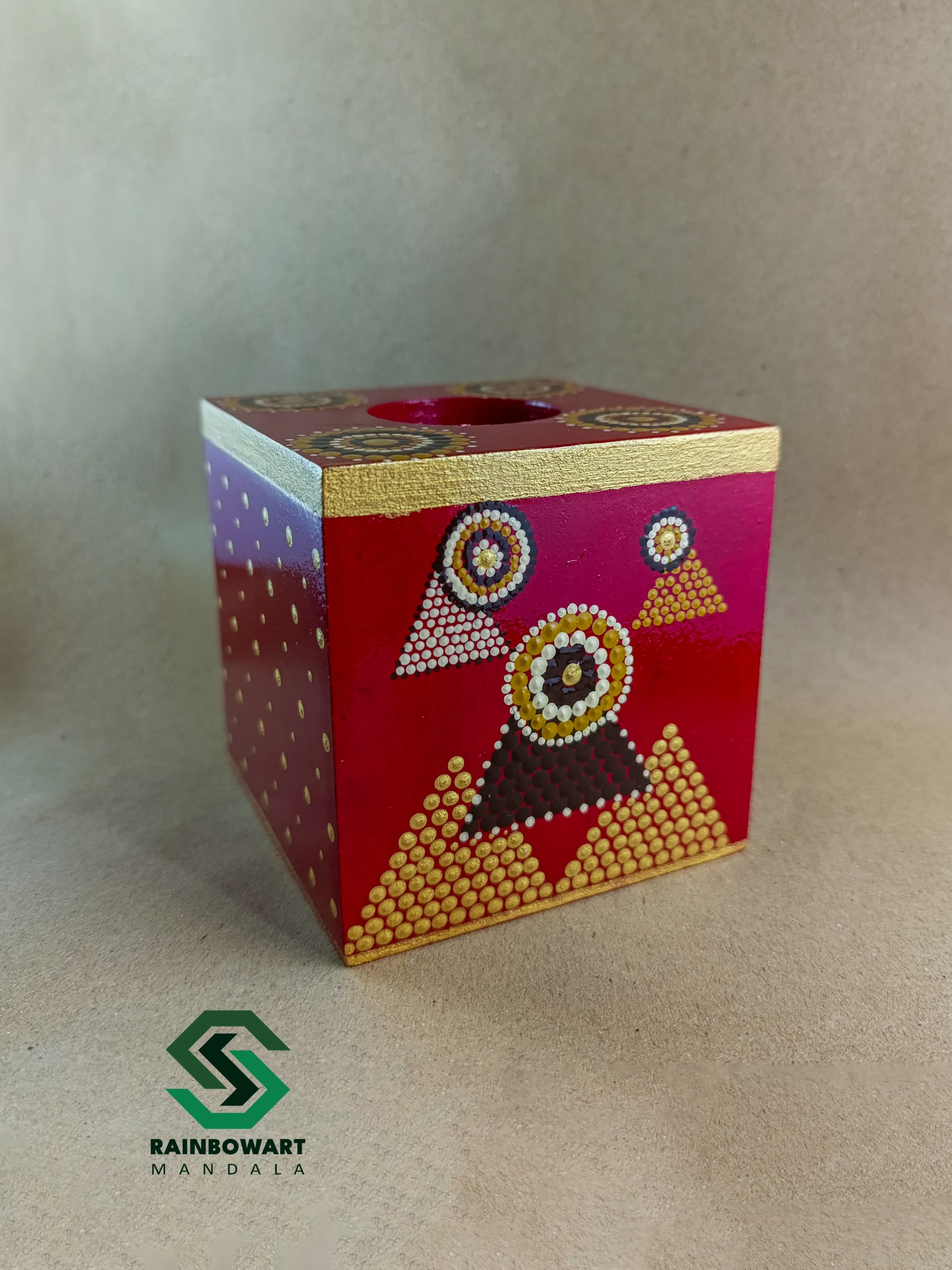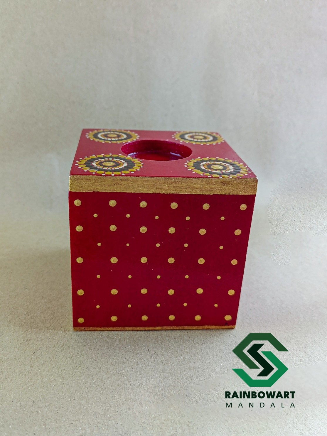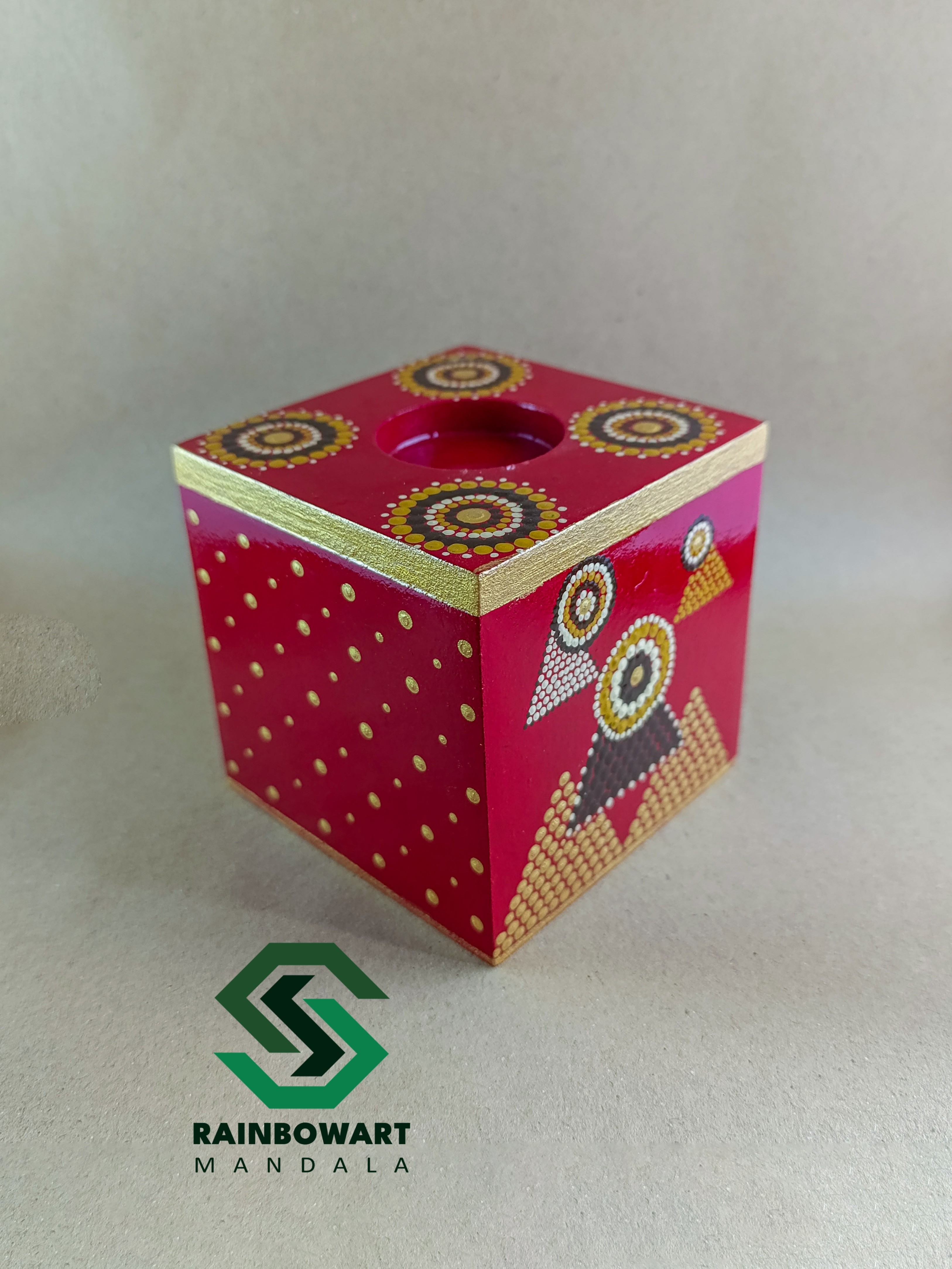 جاشمعی و جاوارمری چوبی مکعبی قرمز | طرح ماندالا و دات ماندالا