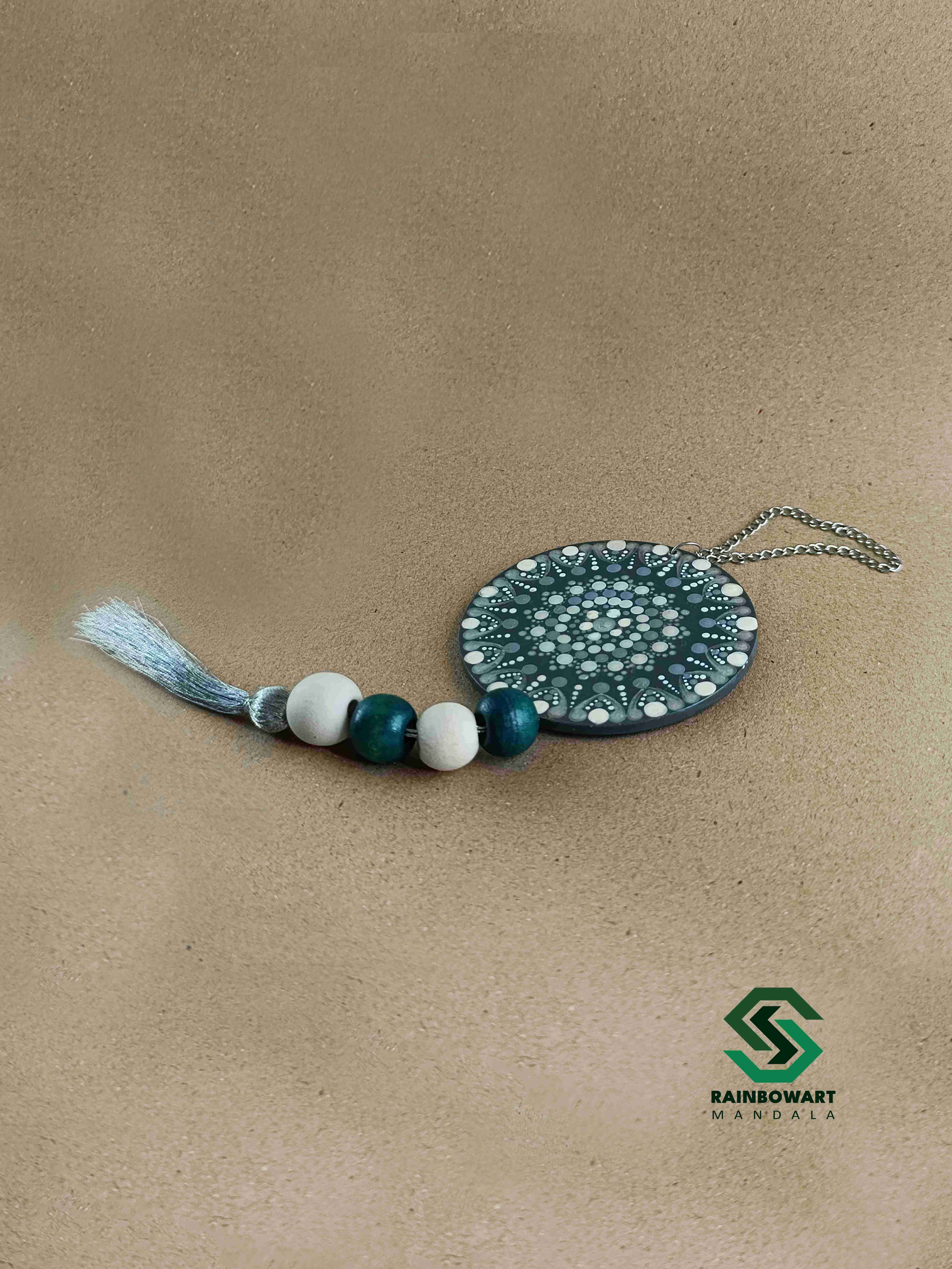 آویز آینه ای طوسی چوبی ماشین | طرح ماندالا و دات ماندالا
