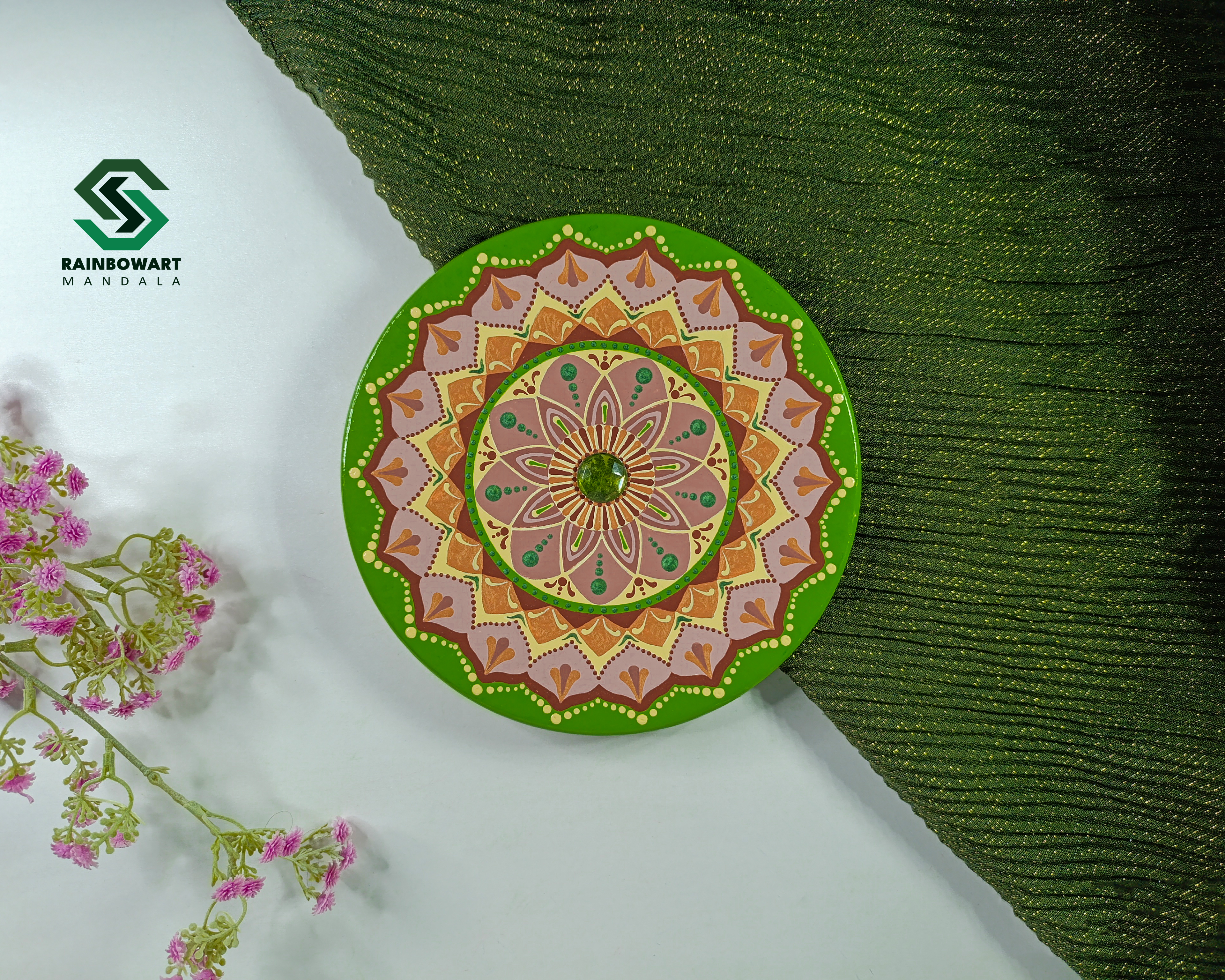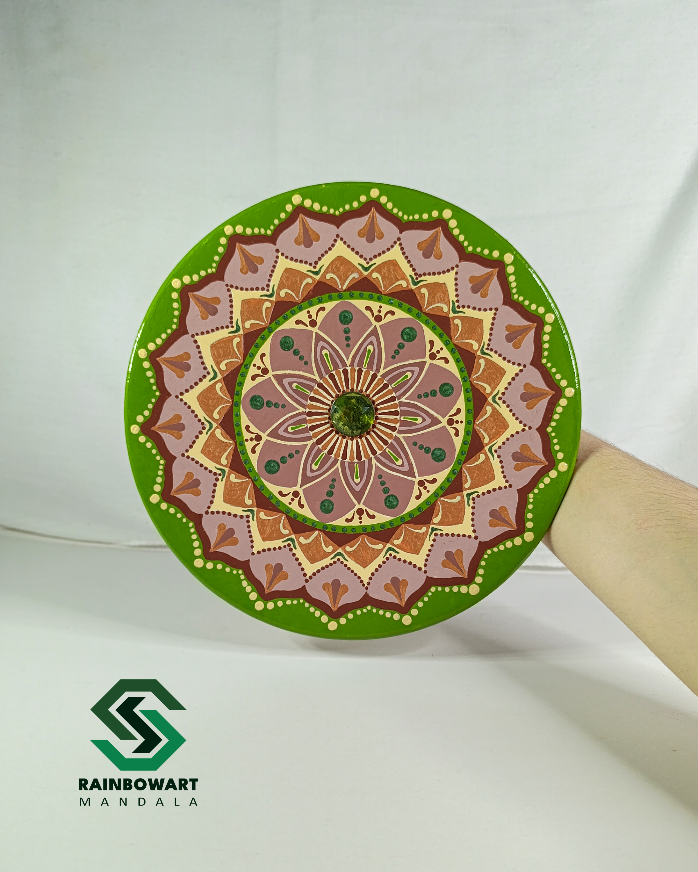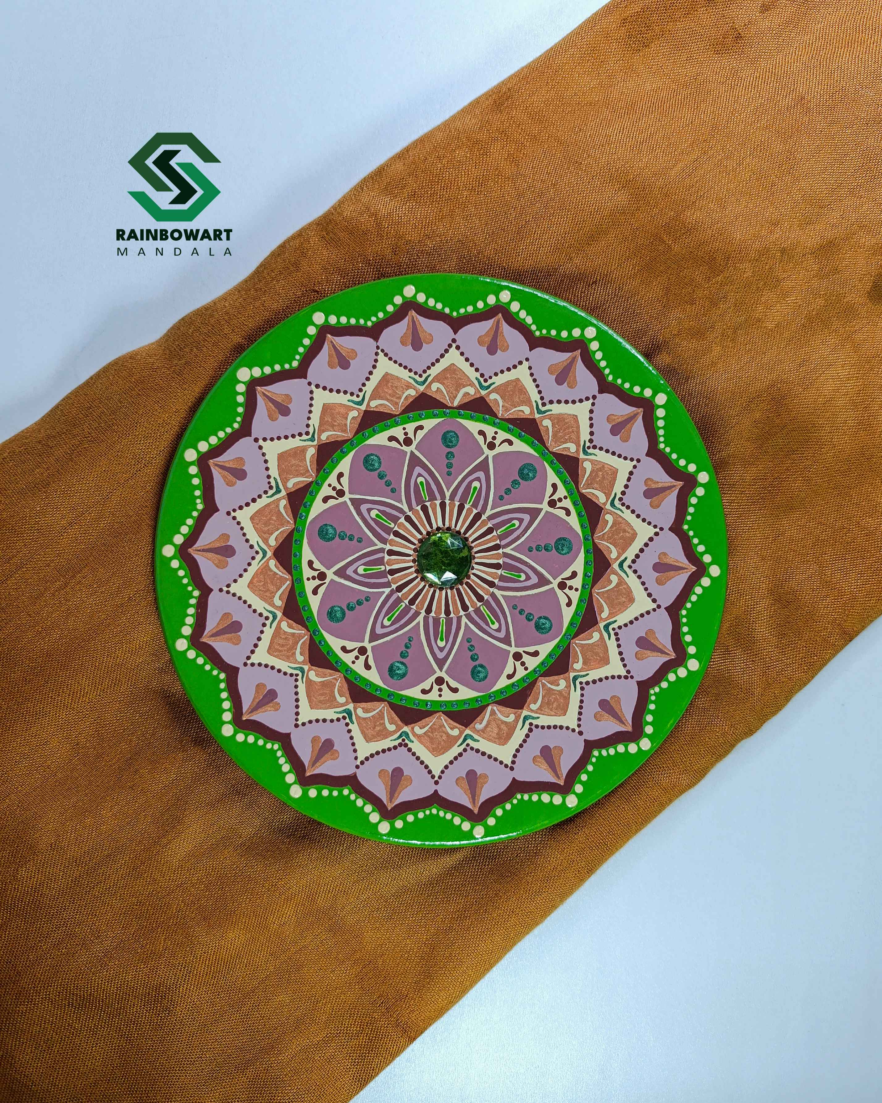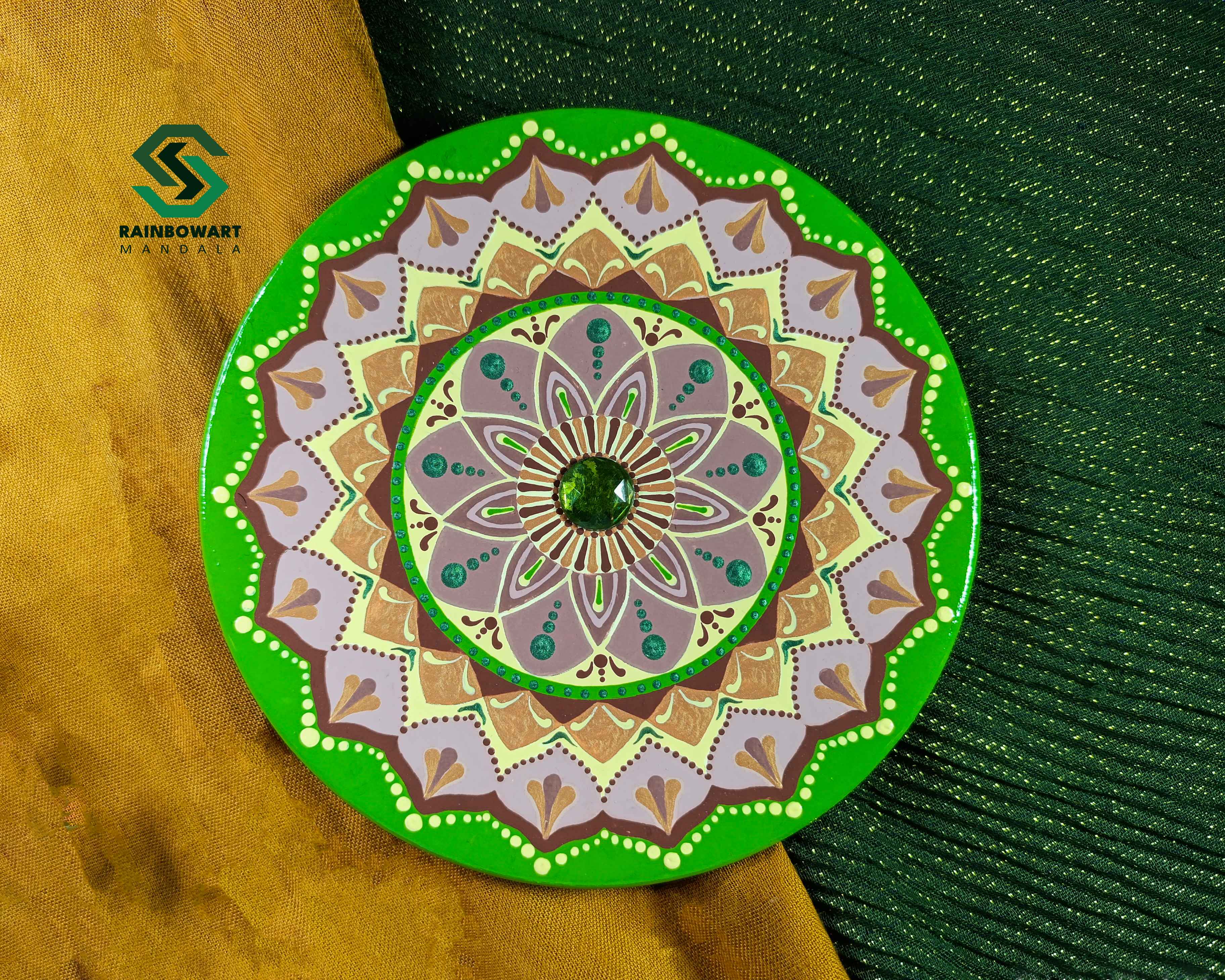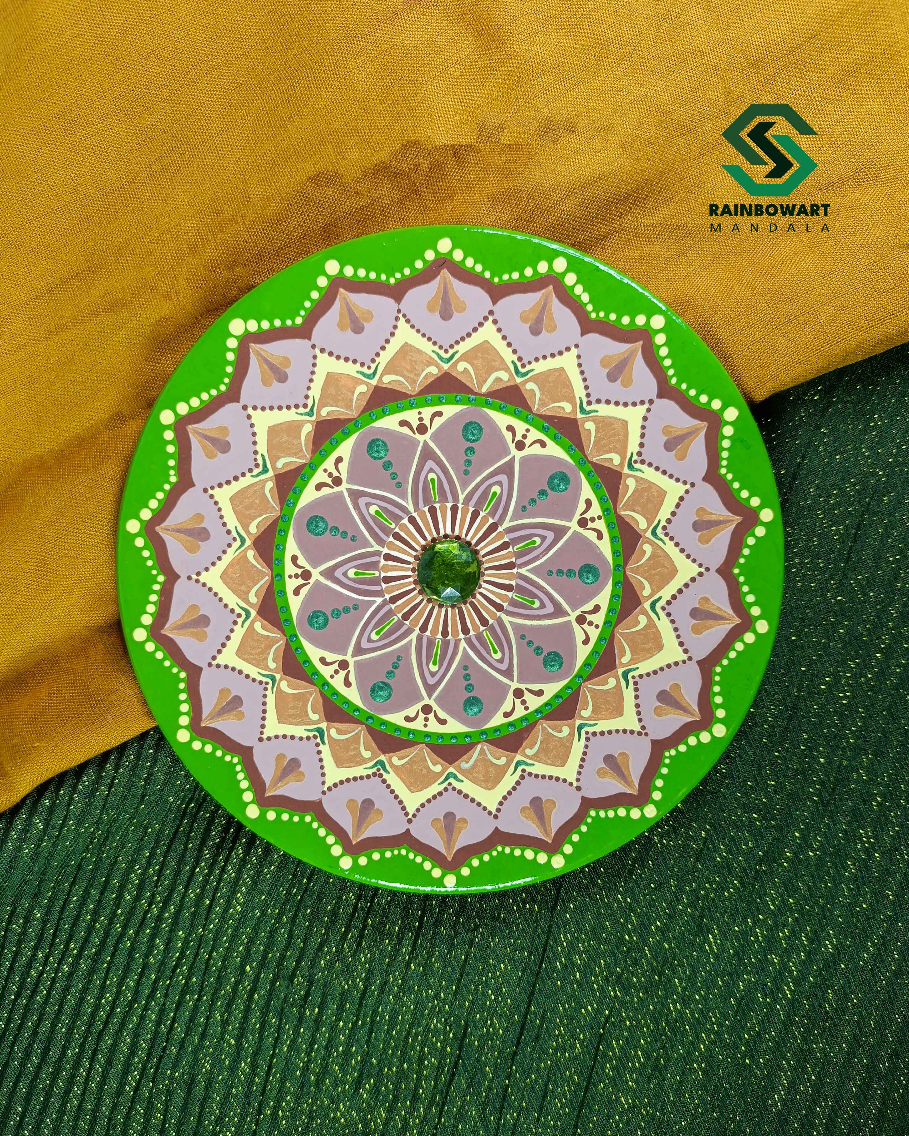 دیوارکوب سفالی با نگین سبز | طرح ماندالا و دات ماندالا