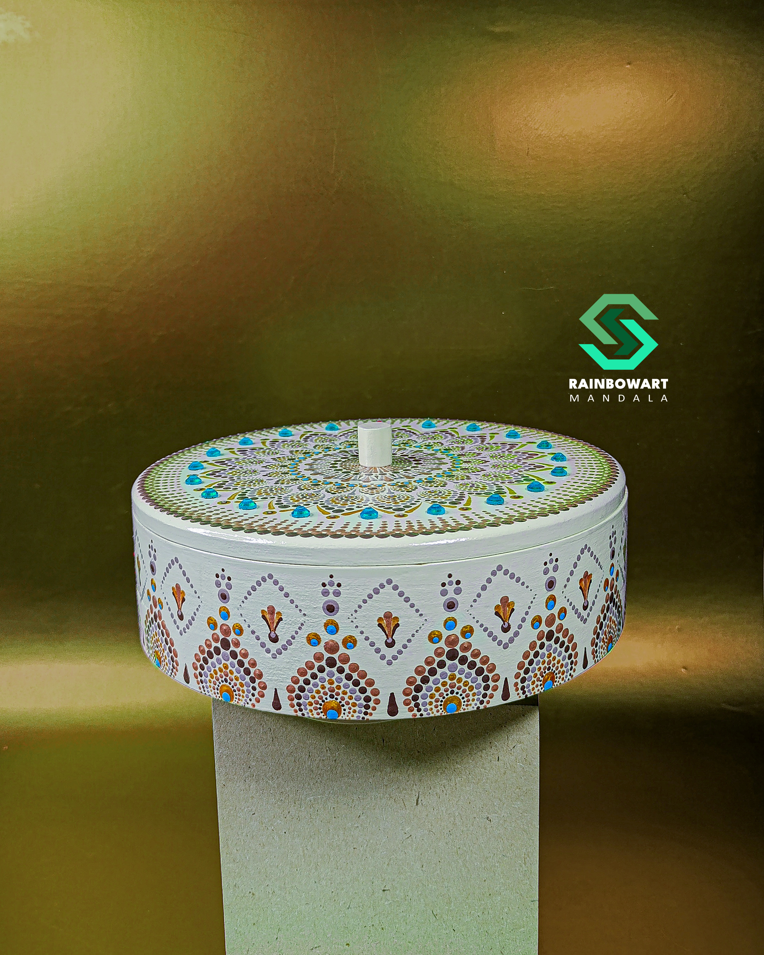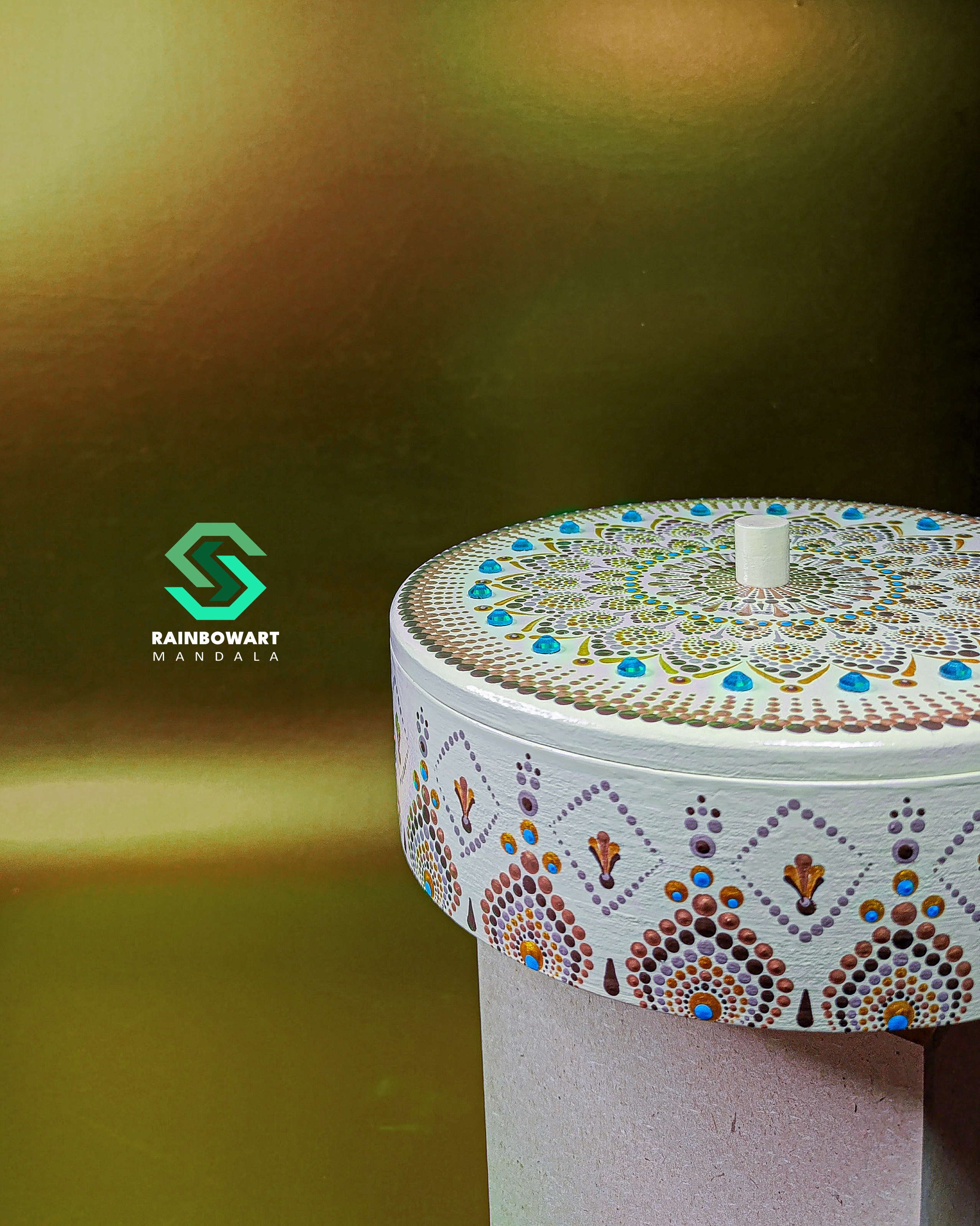 سفارش آجیل خوری هدیه با طرح و رنگ دلخواه ماندالا و دات ماندالا از فروشگاه رینبوآرت | آجیل خوری چوبی دکوری | آجیل خوری تزئینی
