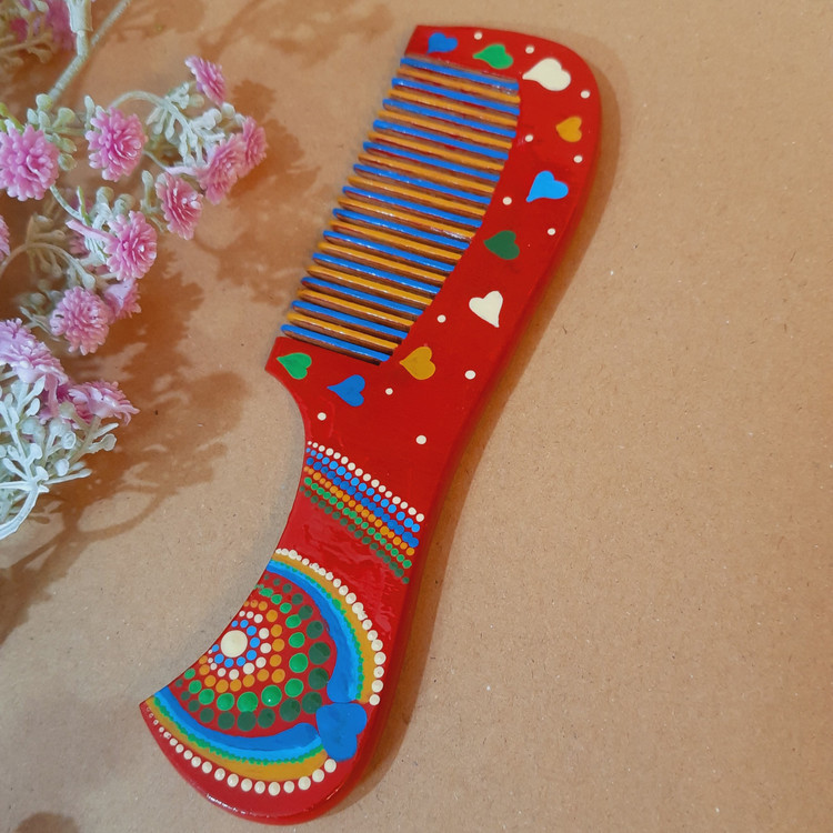 شانه دستی چوبی رنگ قرمز، طراحی کلاسیک و خوشدست، ساخته شده از چوب مرغوب. این شانه برای استفاده روزمره و مراقبت از موها مناسب است و به راحتی در کیف یا جیب جای میگیرد.