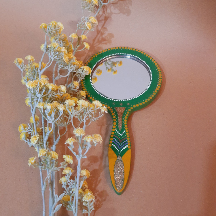 آینه دستی چوبی با قاب گرد و رنگ سبز تیره، طراحی زیبا و سبک که به راحتی در دست قرار میگیرد. این آینه مناسب استفاده روزمره و آرایش است و میتواند جلوهای خاص به میز آرایش یا کیف شما ببخشد.