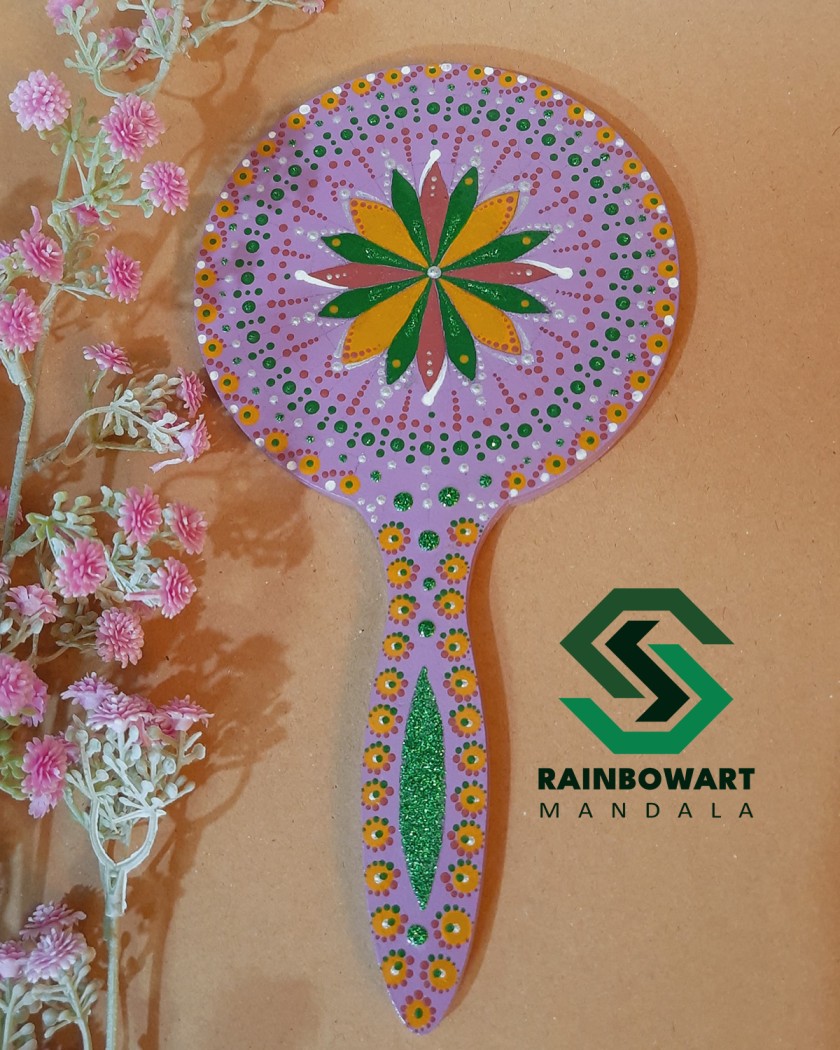آئینه دستی چوبی یاسی | طرح ماندالا و داتماندالا