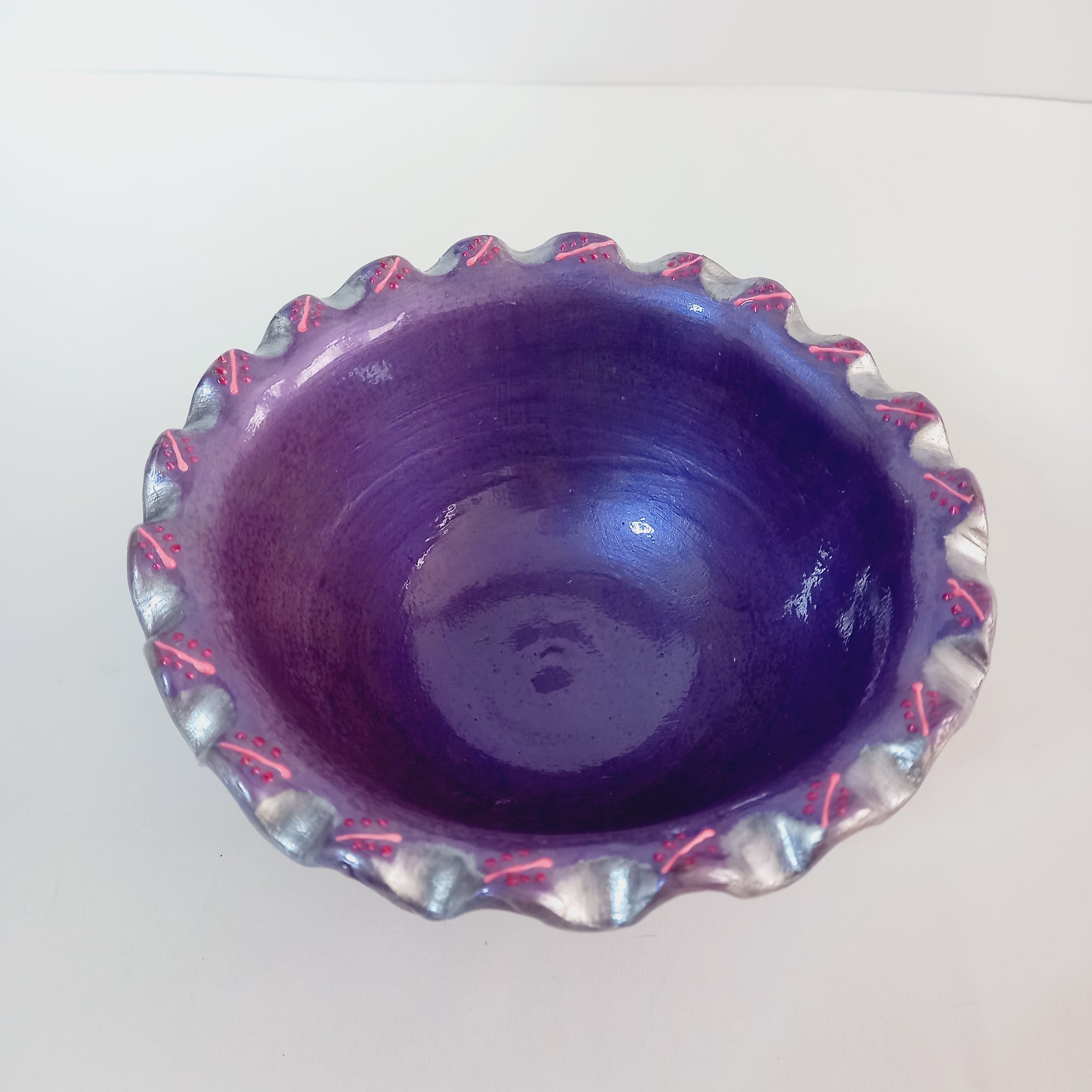 بشقاب و کاسه سفالی بنفش | طرح ماندالا و دات ماندالا