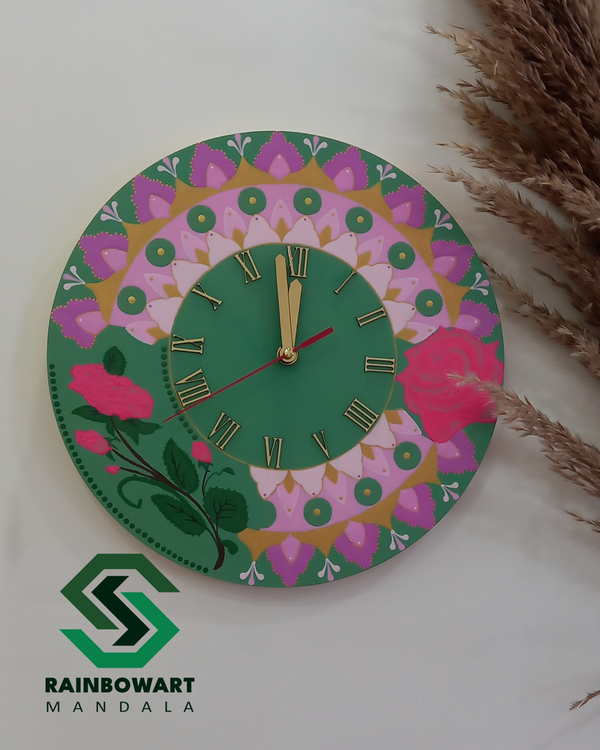 ترکیب رنگ سبز با گل رز نقاشیشده، آن را به یک قطعه دکوراتیو خاص و ماندگار تبدیل کرده که میتواند هم بهعنوان ساعت و هم بهعنوان یک تابلو هنری روی دیوار بدرخشد.