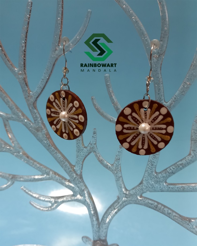 این گوشوارههای چوبی زیبا با فرم دایرهای، از MDF سبک ساخته شدهاند و با طرحهای داتماندالا و ماندالا تزیین شدهاند. ترکیب رنگ فندقی گرم با طیفهای کرمی و قهوهای، حس اصالت و هنر را به استایل شما میبخشد. نگین ظریف کار شده در مرکز هر گوشواره، جلوهای خاص و درخشان ایجاد کرده است.