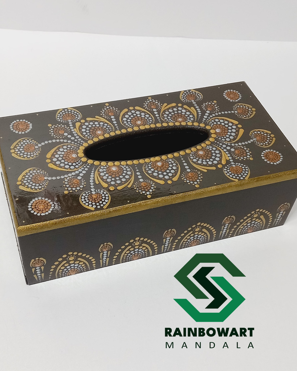 این جادستمالی چوبی ساده با بدنه قهوهای گرم و طرحهای ظریف ماندالا و دات ماندالا در طیفهای طلایی، تلفیقی از کاربرد و زیبایی است. طراحی مستطیلی آن با درب کشویی در زیر محصول، دسترسی آسان برای قرار دادن دستمال را فراهم میکند و در عین حال، جلوهای خاص به فضاهای منزل یا محل کار شما میبخشد.