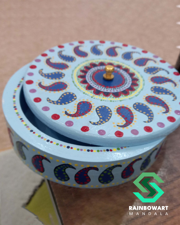 شکلات خوری چوبی آبی آسمانی | طرح ماندالا و دات ماندالا