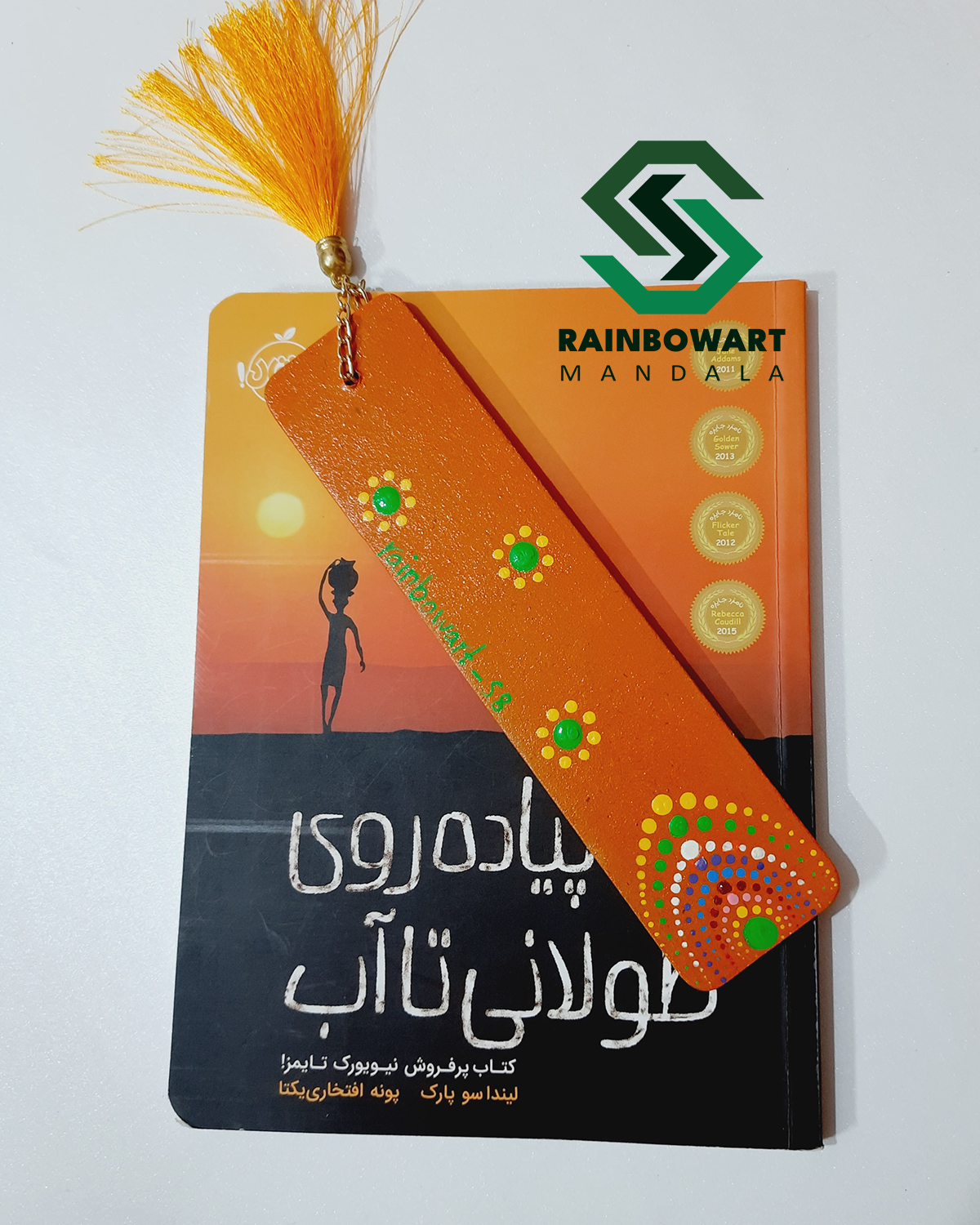 نشانگر چوبی نارنجی با طرح رینبودش | طرح فانتزی, ماندالا و دات ماندالا